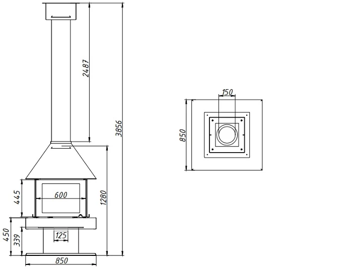 850х850х3455 мм
