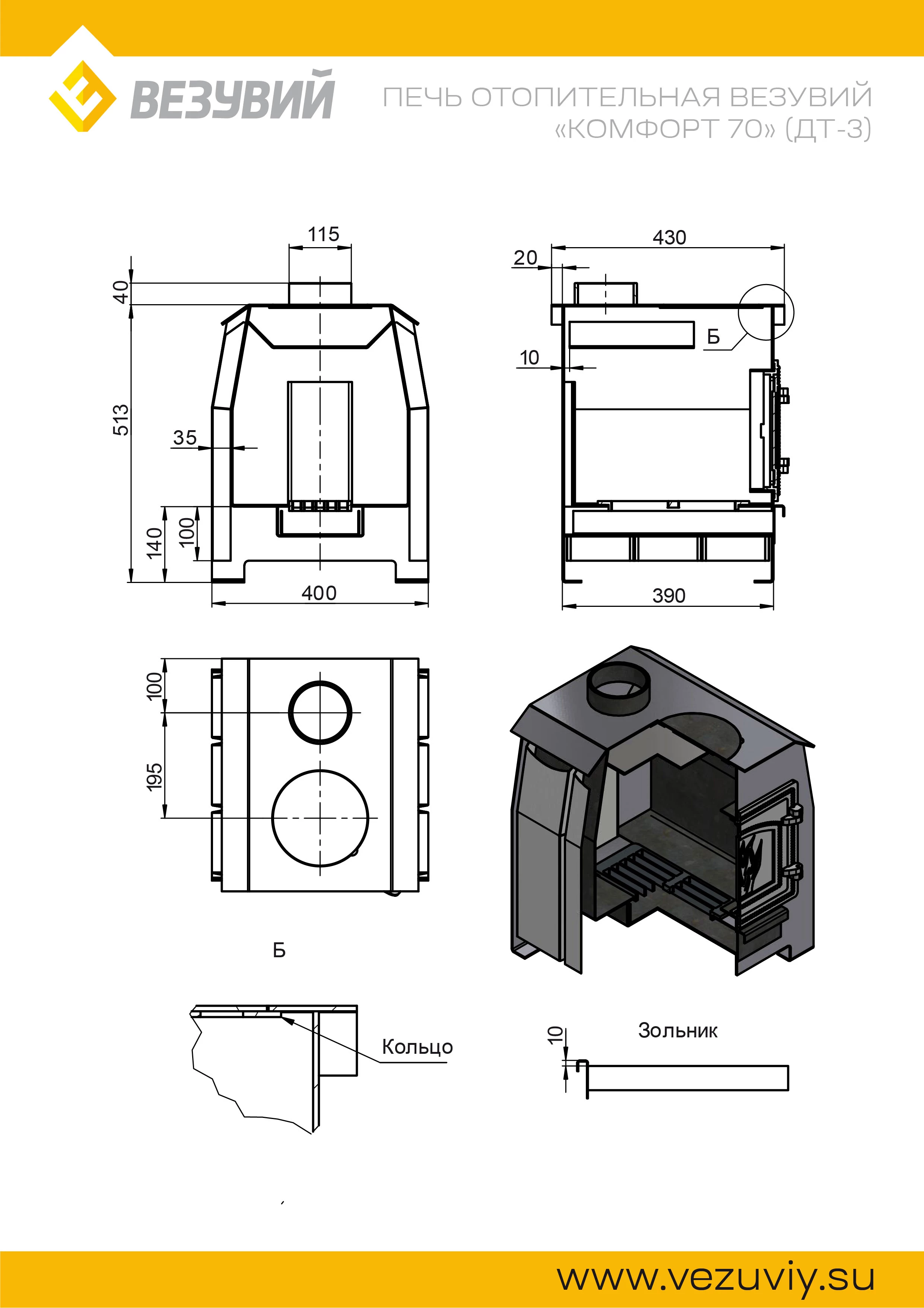 Отопительная печь Везувий Комфорт 70 (ДТ-3С)