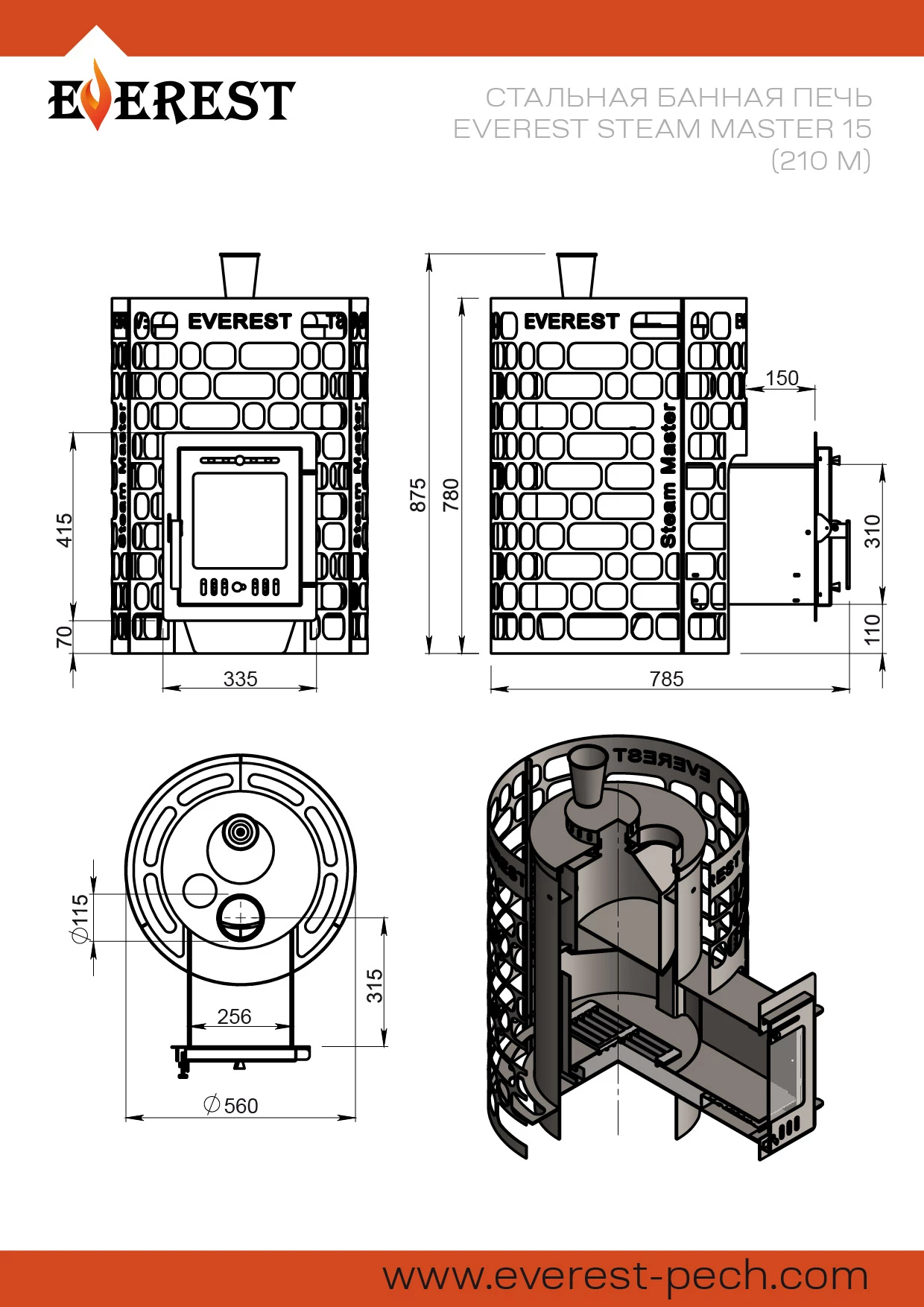 Печь для бани Эверест Steam Master 18 INOX