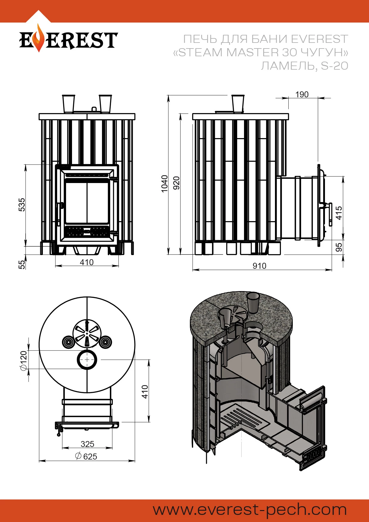 Печь для бани Эверест Steam Master 30 Чугун Ламель Пироксенит