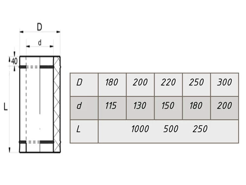 Труба DTH L500 D250 с изоляцией 50 мм, AISI 321/оцинкованная сталь (Вулкан)