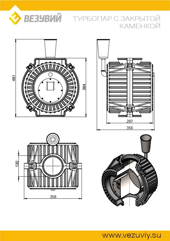 Натрубная закрытая каменка Везувий Турбопар "Шторм"